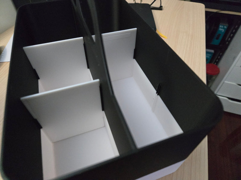 > Removeable dividers with a handle for ease of carry and,